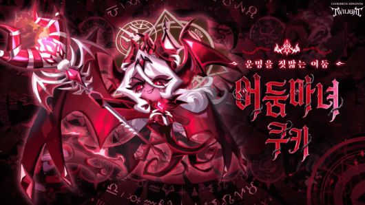 '어둠마녀 쿠키'는 신규 등급인 '위치' 등급의 캐릭터로, 혼돈 속성의 중앙 마법형 쿠키다. 스킬인 '종말의 서막'은 화려한 연출과 함께 적들에게 '실패작'이라는 강력한 디버프를 부여하고, 상대 보호막 제거 및 일정 시간 동안 보호막 무효 등 판도를 뒤바꾸는 효과를 지녔다.