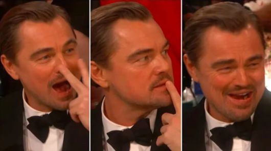 디캐프리오는 다른 출연자를 가리키며 손가락을 눈에 대고 보고 있었다는 뜻을 나타낸 후, 다소 과장된 듯한 흉내를 냈다.