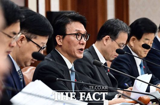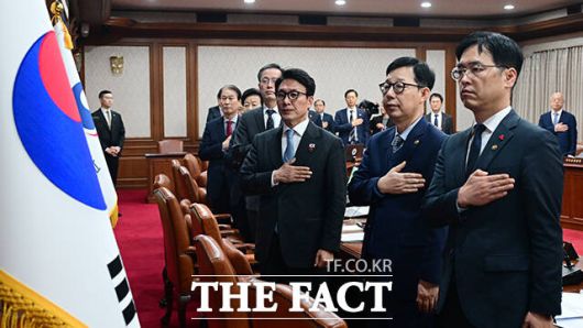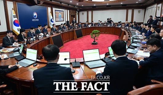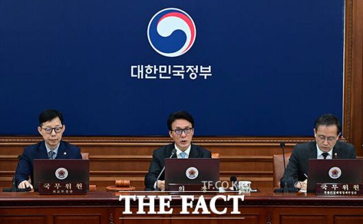 [더팩트ㅣ임영무 기자] 김민석 국무총리가 13일 오전 서울 종로구 정부서울청사에서 열린 국무회의에 첫 참석해 모두발언을 하고 있다.