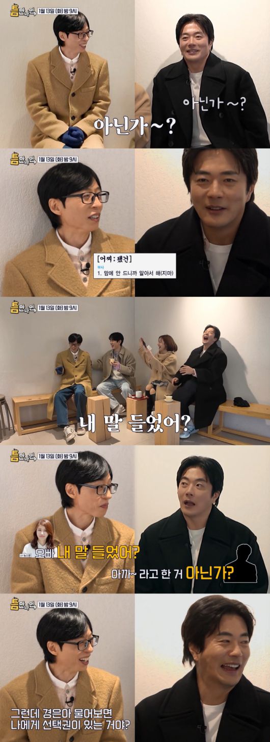 이어 유재석은 아내 나경은에게 가장 많이 듣는 말을 묻자 "경은 씨가 나한테 많이 하는 말은 '내 말 들었어?'다. 내가 '들었지. 안 듣겠니'라고 하면 '근데 오빠 왜 대답 안 하냐'고 한다. 나는 그 질문에 대해서 생각할 시간이 필요한 거다"라며 현실 부부의 모습을 드러냈다.