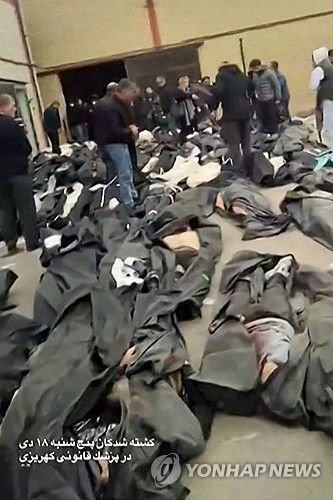 이란 시위 진압 희생자로 추정되는 시신들 |