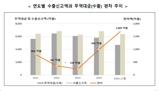 13일 관세청은 ‘고환율 대응 전국 세관 외환 조사 관계관 회의’를 열고 이 같은 내용이 담긴 세부 추진 계획을 발표했다. 관세청에 따르면 지난해 은행을 통해 지급·수령된 무역대금과 세관에 신고된 수출입 금액 간의 편차는 약 2900억 달러(약 427조 원)로 집계됐다. 최근 5년간 가장 큰 규모다. 결제 시점 차이 등으로 일정 부분 편차가 발생할 수 있으나, 그 격차가 크다는 게 관세청의 분석이다.