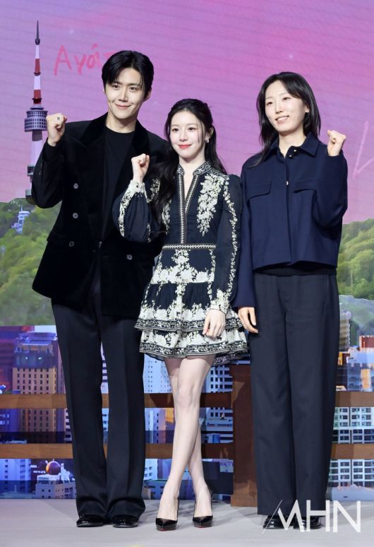 (MHN 이지숙 기자) 배우 김선호, 고윤정, 유영은 감독이 13일 오전 서울 강남구 조선팰리스 강남에서 열린 넷플릭스 시리즈 '이 사랑 통역 되나요?' 제작발표회에 참석해 포즈를 취하고 있다.