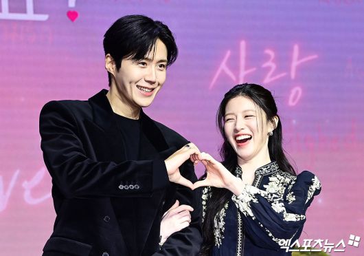 이날 제작발표회에 참석한 배우 김선호, 고윤정이 포토타임을 갖고 있다.