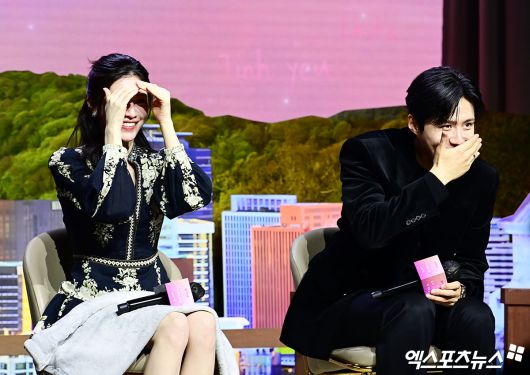 (엑스포츠뉴스 박지영 기자) 13일 오전 서울 역삼동 조선팰리스 강남에서 넷플릭스 새 시리즈 '이 사랑 통역 되나요?' 제작발표회가 열렸다. 이날 제작발표회에 참석한 배우 고윤정과 김선호가 취재진의 질문에 웃음을 터뜨리고 있다.박지영 기자 jypark@xportsnews.com