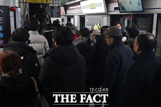 [더팩트ㅣ남용희 기자] 서울 시내버스가 총파업에 돌입한 13일 오전 서울지하철 1호선 서울역 승강장이 시민들로 북적이고 있다.