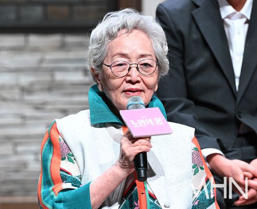 (MHN 이현지 기자) 배우 김영옥이 13일 오후 서울 강서구 LG아트센터에서 진행된 '노인의 꿈' 기자간담회에 참석하고 있다.