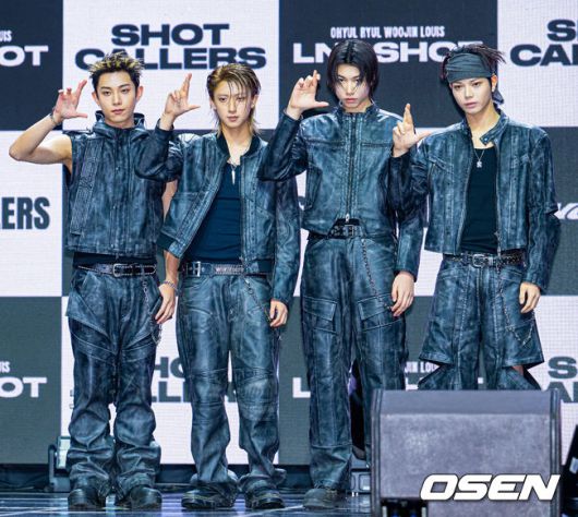 [OSEN=민경훈 기자] 신인 보이그룹 롱샷(LNGSHOT) 데뷔 쇼케이스 삿콜러스(SHOT CALLERS)가 13일 오후 서울 영등포구 명화라이브홀에서 열렸다. 오율, 률, 우진, 루이로 구성된 롱샷은 박재범이 설립한 레이블 모어비전에서 선보이는 첫 보이그룹으로 주목을 받았다. 무대 위에서 롱샷이 포토타임을 하고 있다. 2026.01.13 / rumi@osen.co.kr