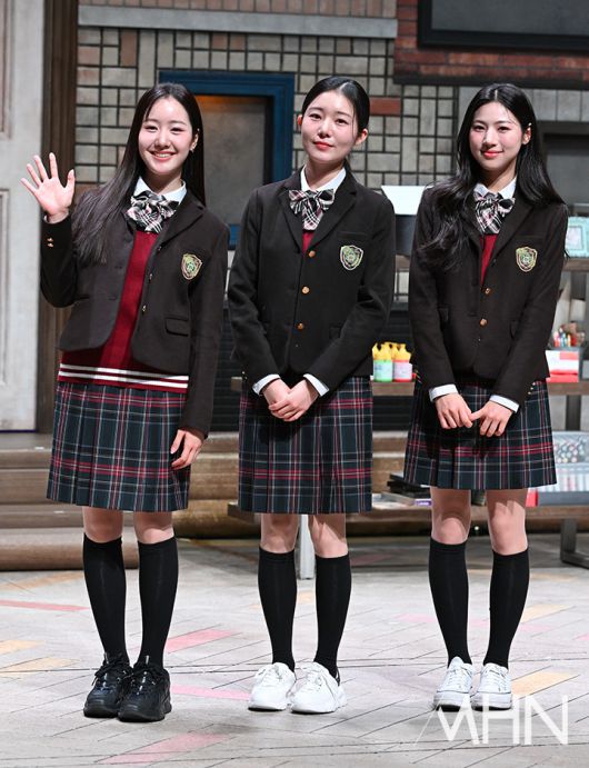 (MHN 이현지 기자) 배우 진지희, 윤봄, 최서윤이 13일 오후 서울 강서구 LG아트센터에서 진행된 '노인의 꿈' 기자간담회에 참석하고 있다.