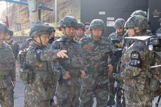 [서울=뉴시스] 진영승 합참의장이 15일 육군 22사단 GOP대대를 방문해 작전 준비 태세를 점검하고 있다. (사진=합참 제공) 2025.12.15. photo@newsis.com *재판매 및 DB 금지 /사진= |