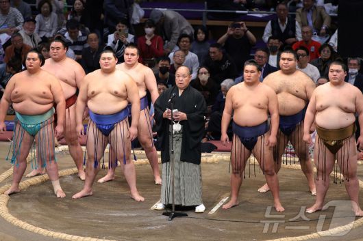 일본 후쿠오카에서 열린 일본 프로 스모 규슈대회 첫날, 일본스모협회 회장이 연설하는 모습. 2025년 11월 9일 촬영된 사진. 2025.11.09.ⓒ AFP=뉴스1 |