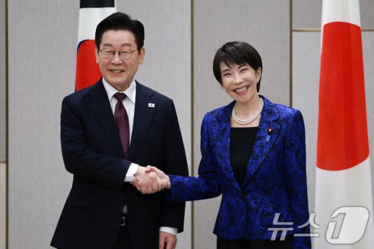 이재명 대통령과 다카이치 사나에 일본 총리가 13일 일본 나라현 회담장에서 열린 확대 회담에 앞서 악수하고 있다. 2026.1.13/뉴스1 ⓒ News1 이재명 기자