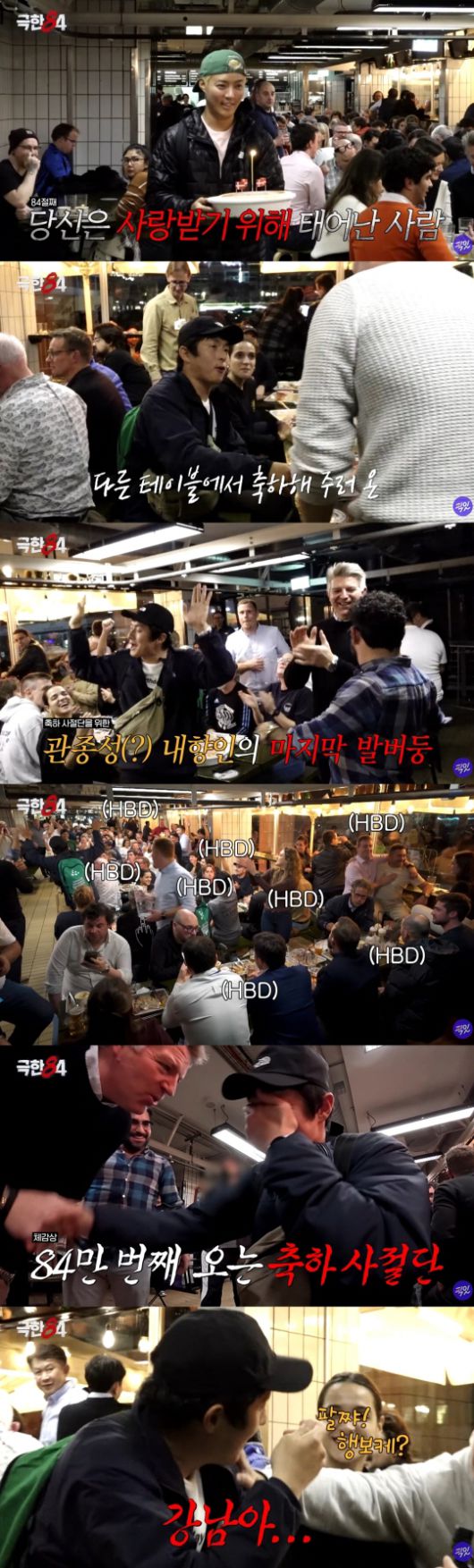 심지어 옆 테이블의 모르는 손님들까지 합세해 기안84의 생일을 축하했고, 펍 전체가 축하 분위기에 휩싸였다. 강남은 "84!"를 크게 외치며 분위기를 더욱 끌어올렸다.