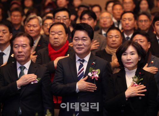 [이데일리 김태형 기자] 박준희(가운데) 관악구청장이 13일 오후 관악아트홀에서 열린 '2026년 관악구 신년인사회'에서 참석자들과 국민의례를 하고 있다.