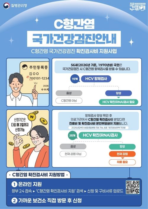 13일 구에 따르면, 국가건강검진(1차 검사)에서 C형간염 양성 반응이 나올 경우, 실제로 바이러스가 있는지 확인하기 위해 확진 검사(RNA 검사)를 반드시 받아야 한다. 기존에는 동네 의원급에서 검사한 경우만 비용이 지원됐으나, 올해부터는 대학병원이나 종합병원 등 대형 의료기관을 이용해도 지원금을 받을 수 있게 됐다.