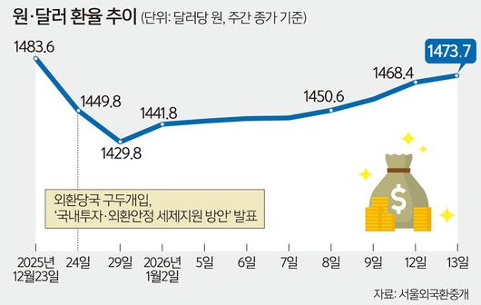 정부가 지난해 말 쏟아낸 외환시장 안정화 대책 효과는 새해 들어 사실상 증발했다. 국민 노후자금인 국민연금과 외환위기를 겪은 우리 국민에게 특히 민감한 ‘외환보유액’까지 원·달러 환율 방어에 동원됐으나, 효과가 없었다. 정부의 인위적인 환율 끌어내리기 대책은 ‘서학개미’(해외 주식 투자자)들에게 오히려 ‘미국 주식을 싸게 살 기회’로 여겨졌다. 달러 저가 매수 열풍 속에 수급 불균형이 심화했고, 결국 환율이 다시 치솟는 악순환이 반복되고 있다는 지적이 나온다.