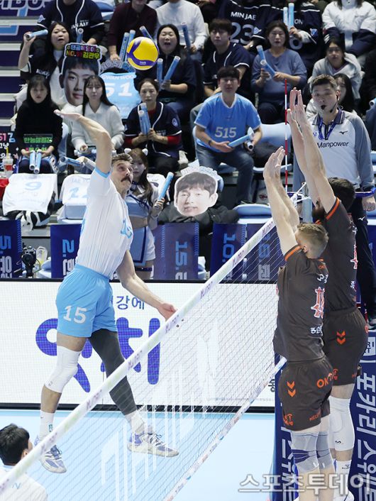 [인천=스포츠투데이 권광일 기자] 2025-2026 진에어 V-리그 남자부 대한항공-OK저축은행 경기가 13일 인천 계양체육관에서 열렸다. 대한항공 러셀이 스파이크를 때리고 있다. 2026.01.13. [스포츠투데이 권광일 기자 sports@stoo.com]