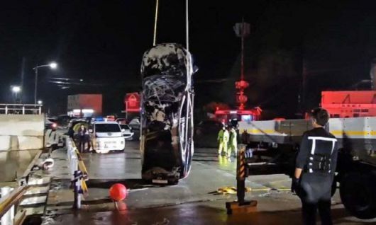 목포해경이 지난해 6월 진도군 진도항에서 일가족 4명이 탑승했던 차량을 인양하는 모습 (사진=목포해경) |