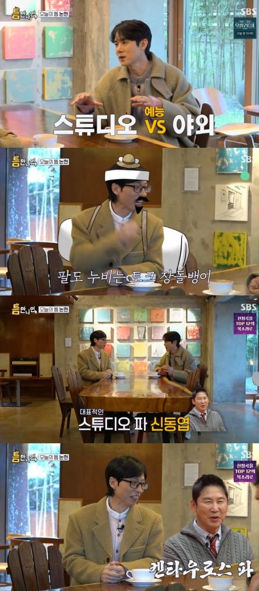 이에 유연석은 "스튜디오 파와 야외 파가 있지 않냐"고 했고, 유재석은 스스로 "나는 장돌뱅이"라면서 야외 파라고 했다.