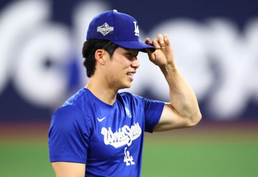 TORONTO, ON - OCTOBER 23: Hyeseong Kim #6 of the Los Angeles Dodgers throws a ball during World Series Workout Day at Rogers Centre on October 23, 2025 in Toronto, Ontario, Canada. Vaughn Ridley/Getty Images/AFP (Photo by Vaughn Ridley / GETTY IMAGES NORTH AMERICA / Getty Images via AFP) <저작권자(c) 연합뉴스, 무단 전재-재배포, AI 학습 및 활용 금지> |