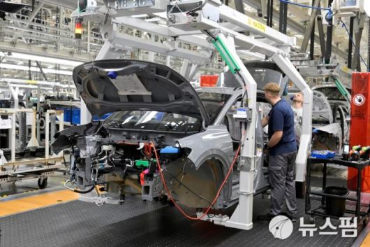 지난 2024년 9월 20일(현지 시간) 독일 엠덴에 있는 폭스바겐 공장에서 직원들이 생산라인에서 일을 하고 있다. [사진=로이터 뉴스핌] |