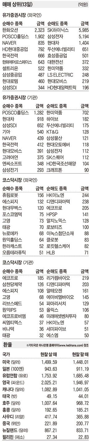 [주식 매매 상위 종목 및 환율] 2026년 1월 13일자