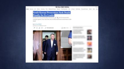 미국의 일간지 월스트리트저널은 한국의 특검이 지난 2024년 12월 군대를 동원해 '헌법 파괴'를 주도했다며 윤 전 대통령에 대해 최고형인 사형을 구형했다고 보도했습니다.