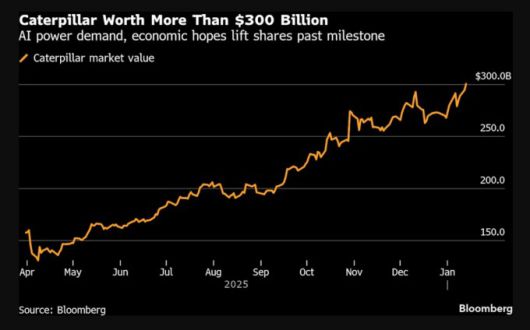 이 기사는 인공지능(AI) 번역으로 생산된 콘텐츠로, 원문은 1월 13일자 블룸버그 기사(Caterpillar Crosses $300 Billion in Market Value on AI Rally)입니다.