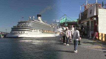 여기에 중일 외교 갈등이 깊어지면서 일본으로 향하던 중국발 크루즈가 우리나라로 뱃머리를 돌리는 모습입니다.