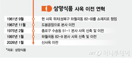 삼양식품 사옥 이전 연혁/그래픽=김현정 |