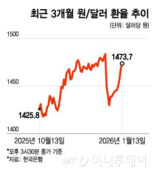 최근 3개월 원달러 환율 추이/그래픽=윤선정 |