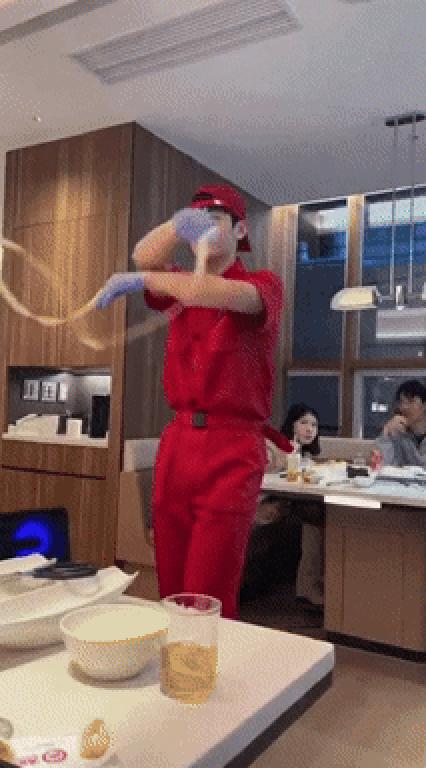 영상 속 직원은 쿵푸면 생면을 능숙한 손놀림으로 공중에 돌리며 늘였다 접었다를 반복해 수타면을 뽑아낸다. 생면을 자유자재로 다루는 화려한 퍼포먼스가 이어지고 있지만, 고객들의 시선을 먼저 사로잡는 건 퍼포먼스 자체보다 직원의 외모였다.