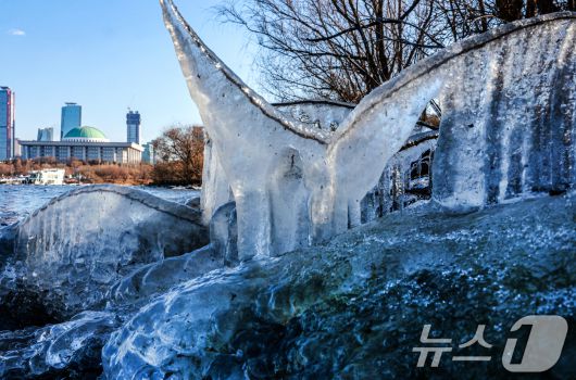 한낮에도 영하권 추위가 이어진 13일 오후 서울 영등포구 여의도 인근 한강에 고드름이 얼어있다. 2026.1.13/뉴스1 ⓒ News1 이호윤 기자 |