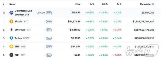 (서울=뉴스1) 박형기 기자 = 미국의 지난달 소비자 물가지수(CPI)가 둔화하자 금리 인하 기대감이 나옴에 따라 암호화폐(가상화폐)는 일제히 상승하고 있다. 특히 비트코인은 9만4000달러를 회복했다.