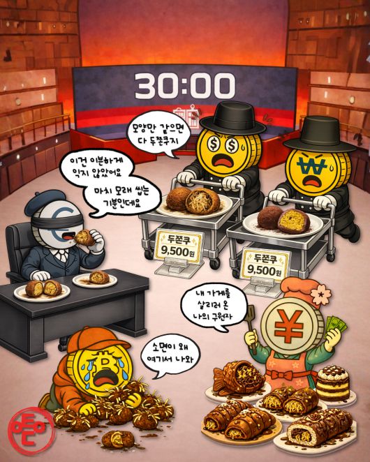 [AI 코인패밀리 만평] 두쫀쿠 탈을 쓴 소면쿠