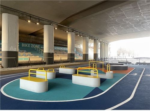 (서울=연합뉴스) 정수연 기자 = 서울 강동구 고덕천교 아래 유휴 공간이 러너와 자전거 라이더를 위한 공간으로 변신했다.