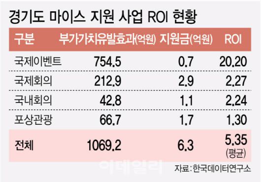 [이데일리 김정훈 기자] 경기도 마이스 지원사업 ROI 현황 |