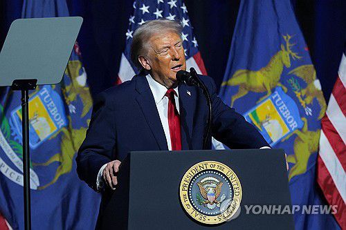 미시간주 디트로이트에서 연설하는 트럼프 대통령 |