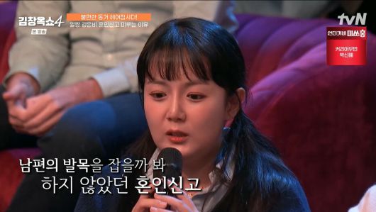 이날 강은비는 남편에게 '여보, 자기'라는 호칭 없이 무뚝뚝하게 이름만 부르는 이유에 대해 "제가 애교가 없다. 사실 학창 시절에 친구들에게 그렇게 예쁨을 받지 않았다. 늘 혼자였고 왕따를 심하게 당했다. 어느 정도였나면 맞아서 귀 고막이 터질 정도였다. 지금도 한쪽이 인공 고막이다"라고 고백해 충격을 자아냈다.