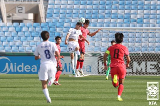 이날 한국은 경기 초반부터 우즈벡을 몰아세웠다. 전반 6분 코너킥 상황에서 강성진의 오른발 슈팅이 나왔고, 전반 18분 강한 압박을 통한 실수를 유도했지만 슈팅으로는 연결되지 않았다.