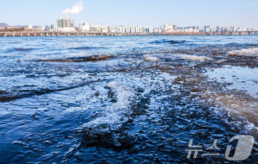 한낮에도 영하권 추위가 이어진 13일 서울 영등포구 여의도 인근 한강이 얼어있다. 2026.1.13/뉴스1 ⓒ News1 이호윤 기자 |