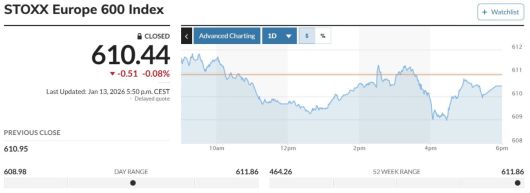스톡스유럽600지수 13일(현지시간) 610.44. (마켓워치) |