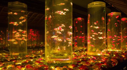 10일 일본 도쿄 긴자 미쓰코시 백화점에 자리한 ‘아트아쿠아리움 미술관 GINZA’ 전시장에서 금붕어들이 전시되어 있다. / 고운호 기자 |