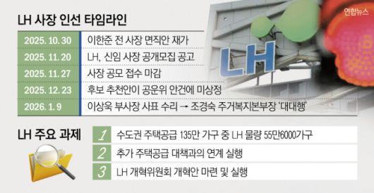 LH는 사장 공백 상황에서도 주택 공급 업무에는 차질이 없다는 입장이다. LH 관계자는 “직무대행 체제에서도 기존 공급 사업과 정부 정책 과제는 내부 절차에 따라 정상적으로 추진되고 있다”며 “사장 인선이 마무리되면 현안 사업과 조직 개편에도 속도가 붙을 것으로 보고 있다”고 말했다.