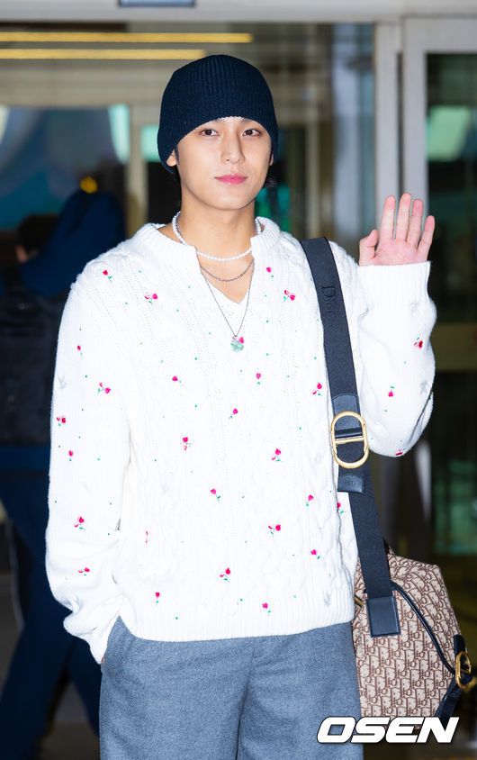 세븐틴 민규가 출국장으로 이동하고 있다. 2026.01.14 / rumi@osen.co.kr
