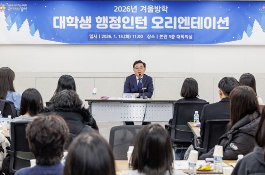 [헤럴드경제=박종일 선임기자] 서울 강서구는 ‘2026년 겨울방학 대학생 행정인턴’ 35명을 대상으로 오리엔테이션(사진)을 개최했다고 14일 밝혔다. 오리엔테이션에는 진교훈 강서구청장도 참석했다.