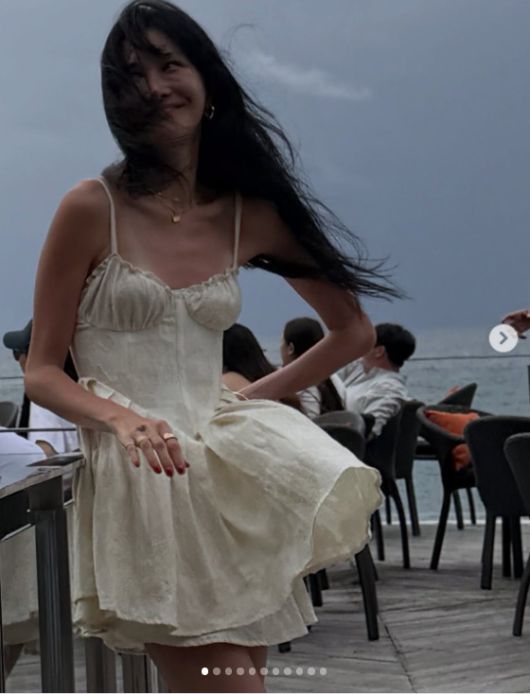 사진 속에서 윤혜진은 하얀색의 미니드레스를 입은 채 발리의 한 바닷가에 서서 포즈를 취했다. 시원시원하게 쭉 뻗은 몸매가 돋보이는 모습이다.