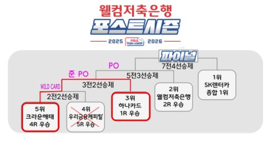 13일 경기도 고양 킨텍스 PBA 스타디움에서 열린 '웰컴저축은행 PBA 팀리그 2025-2026' 포스트시즌 와일드카드 결정전에서 크라운해태는 1차전을 4:2로 승리한 데 이어, 밤 9시 30분에 이어진 2차전마저 풀세트 접전 끝에 4:3으로 잡아냈다. 이로써 합산 성적 2승 1패(1패 안고 시작)를 기록한 크라운해태는 3위 하나카드가 기다리는 준플레이오프(PO) 진출을 확정 지었다.