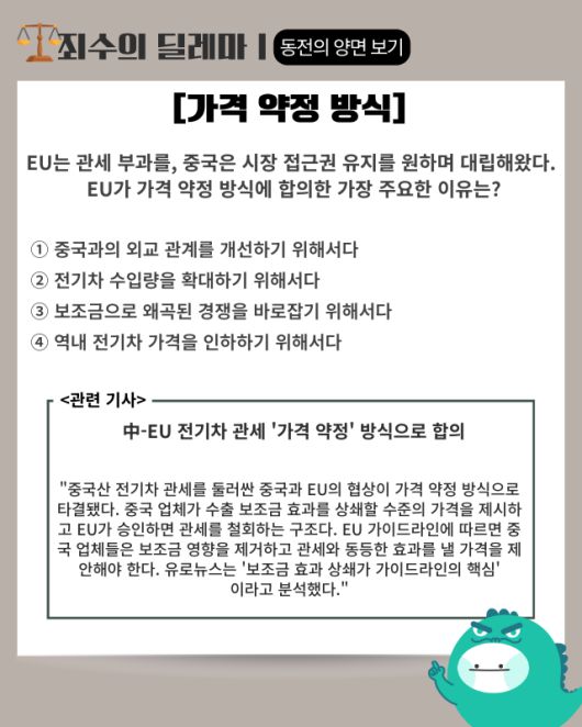 ▶ 기사 바로가기: 中-EU 전기차 관세 ‘가격 약정’ 방식으로 합의