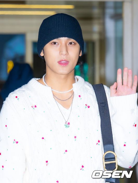 세븐틴 민규가 출국장으로 이동하고 있다. 2026.01.14 / rumi@osen.co.kr